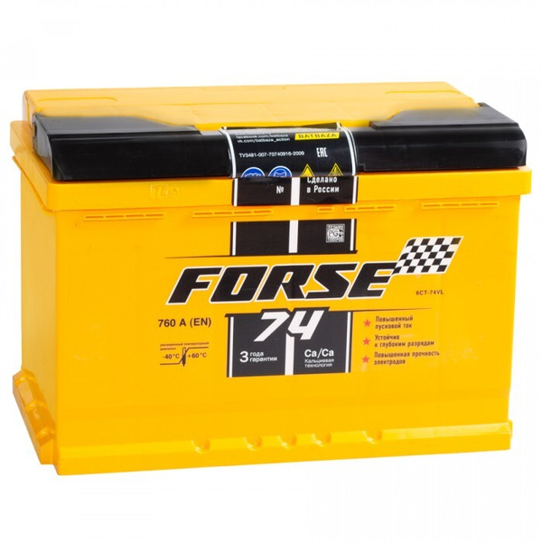 Аккумуляторы 74 Ah 12V FORSE R+ 760A 175mm (LB3)