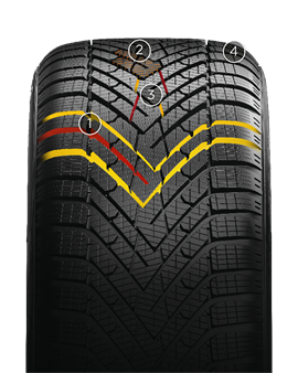 Отличное сцепление на снегу в течение всего срока службы шины, благодаря адаптивной технологии 3D ламелей. В новой шине ламели линейные, но при износе они трансформируются, принимая зигзагообразную форму, которая обеспечивает постоянное сцепление с дорогой и ее способность удерживать снег на снежных поверхностях, гарантируя безопасность.