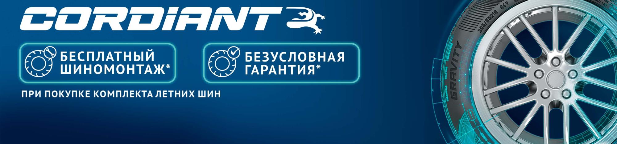 БЕСПЛАТНЫЙ ШИНОМОНТАЖ И БЕЗУСЛОВНАЯ ГАРАНТИЯ ПРИ ПОКУПКЕ ЛЕТНИХ ШИН CORDIANT