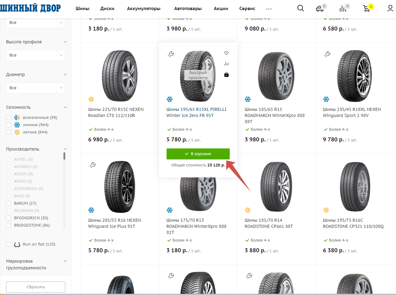 1) Подобрать товар из каталога (только товар из вкладки "В наличии"), выбрать необходимо количество и добавить его в корзину