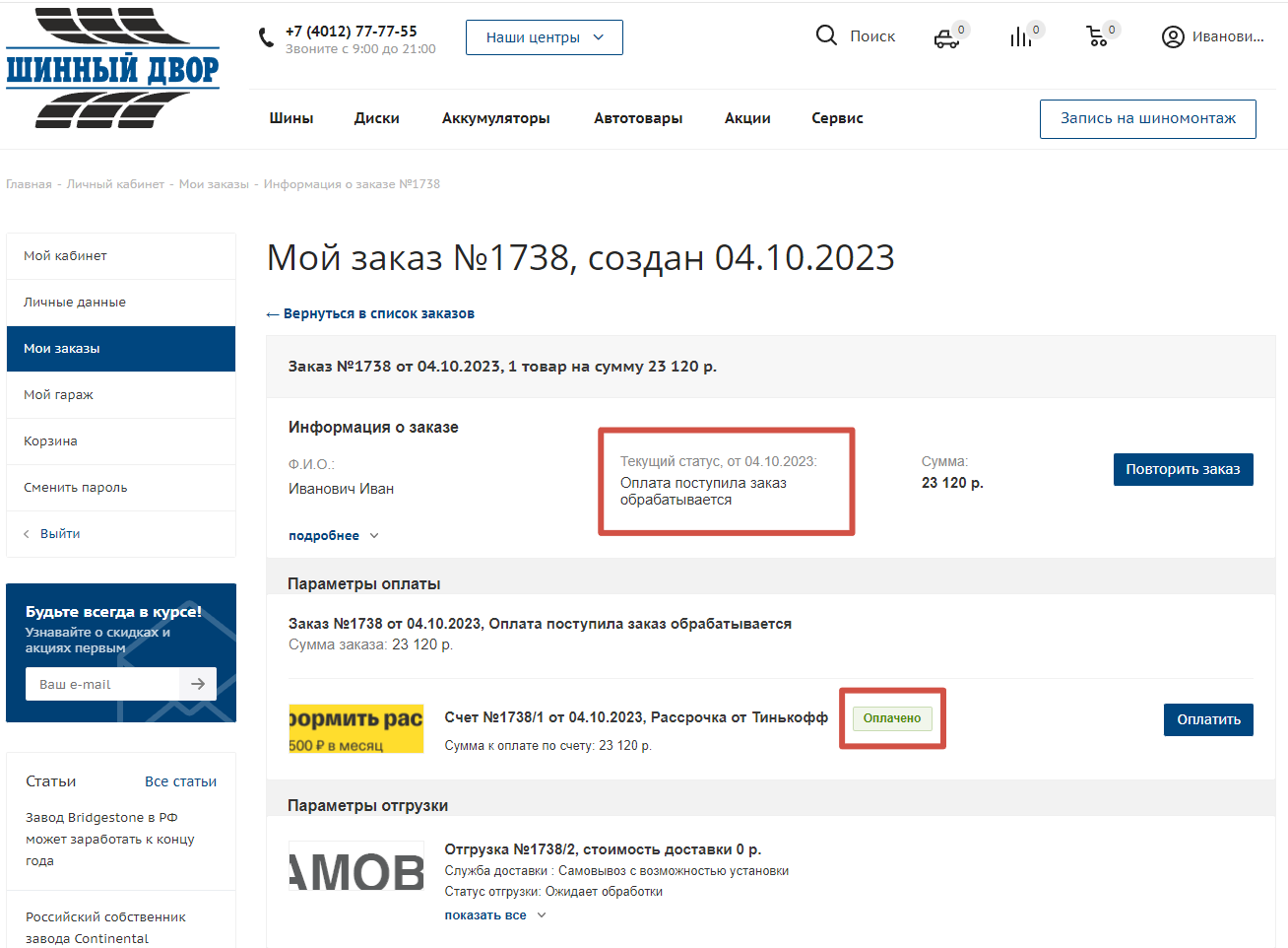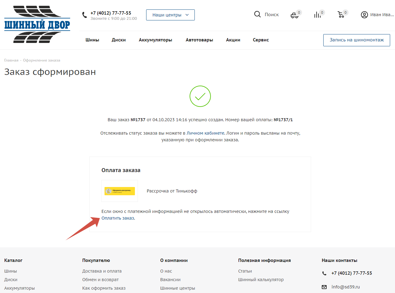 Оформление товара в рассрочку в интернет-магазине "Шинный Двор"